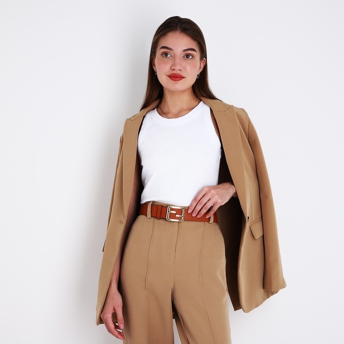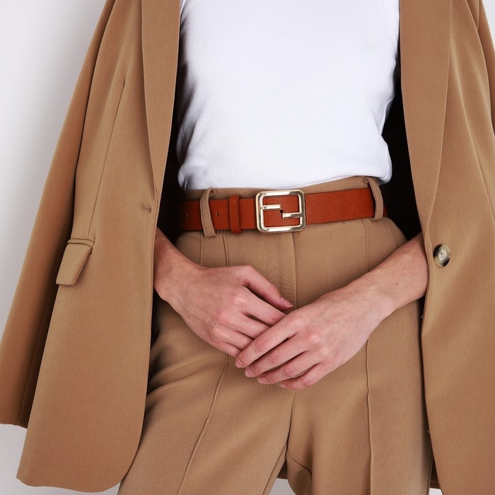 Ремень женский, ширина 3,5 см, пряжка металл, цвет рыжий