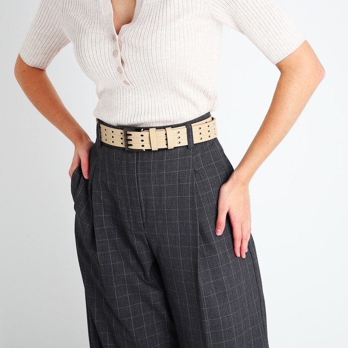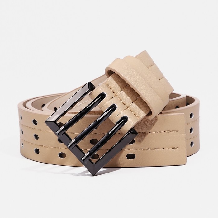 Ремень женский, ширина 3,5 см, пряжка металл, цвет бежевый