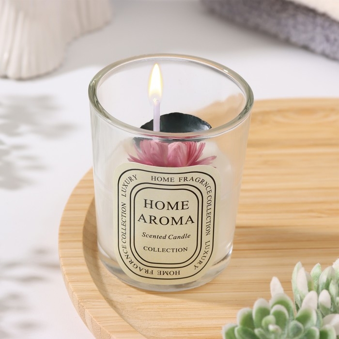 Свеча ароматическая в стакане "Sweet Love", ветряной колокольчик цветы МИКС, 5,5х6,5 см