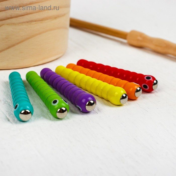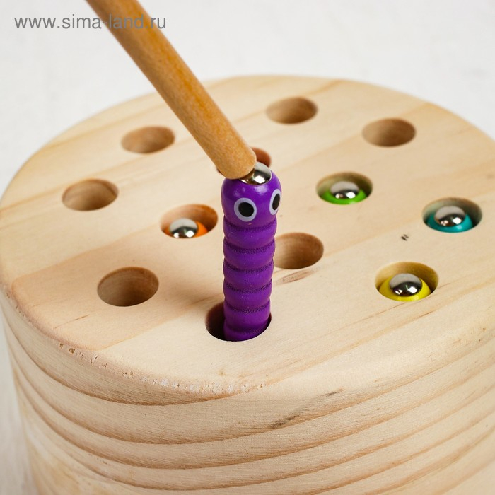 Малышу предстоит поймать всех червячков с помощью магнитной удочки.