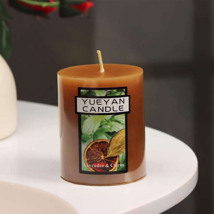 Свеча-цилиндр ароматическая "Лаванда и цитрус", 6х7,5 см
