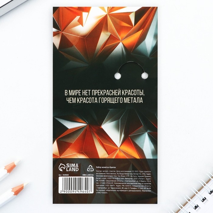 Монета и брелок «Покорителю металла», 8 х 14 см.