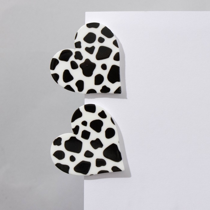 Серьги акрил «Сердце» барс, цвет чёрно-белый