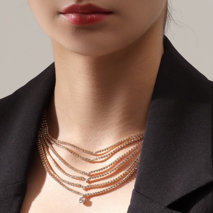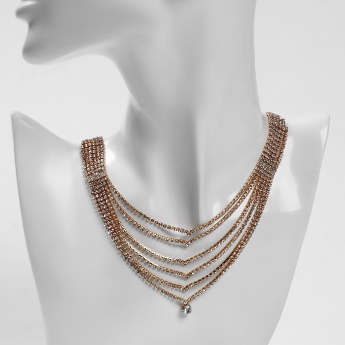 Колье «Голливуд» водопад, 6 рядов, цвет белый в золоте, 30 см