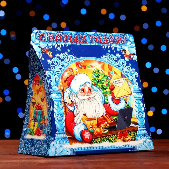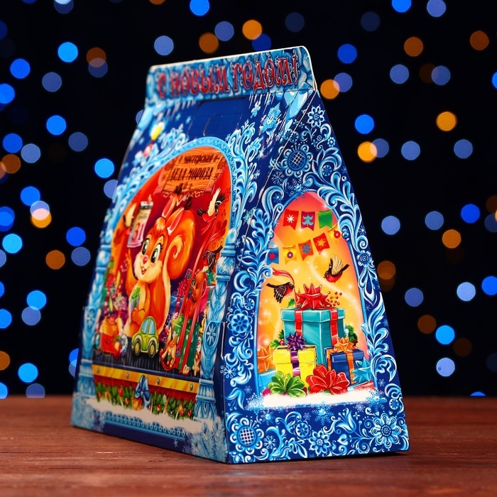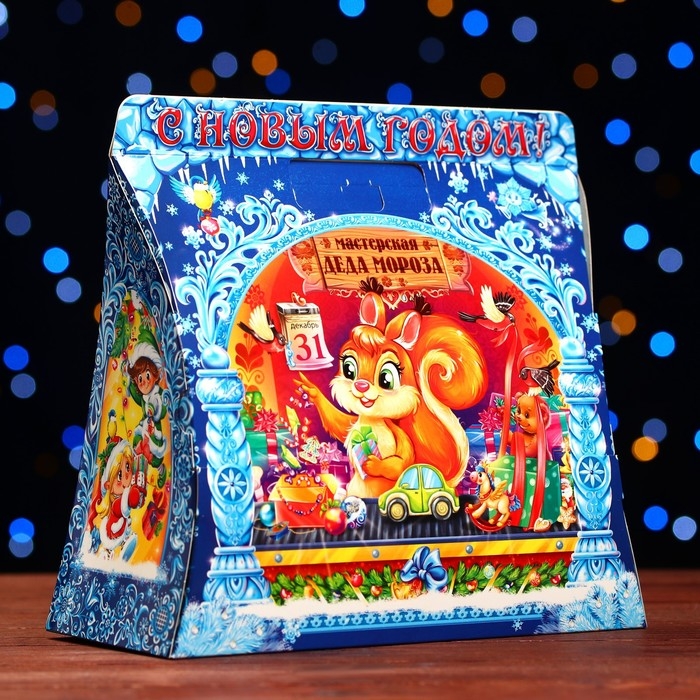 Новый год. Подарочная коробка "Дед мороз с белочкой" 24,5 х 11,5 х 23 см.