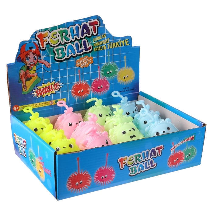 Мяч детский резиновый ёжка световой «Зверята», цвета МИКС, в шоубоксе