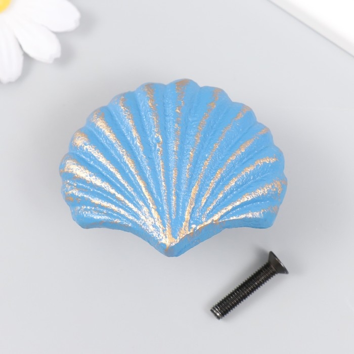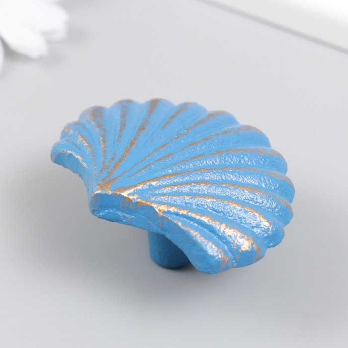 Ручка дверная чугун "Морская ракушка" голубая с патиной 5,4х6,4 см