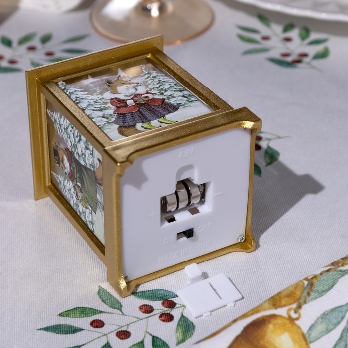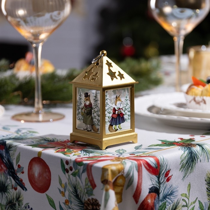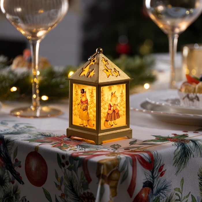Светодиодная фигура «Золотистый фонарь с лисами» 6.3 × 12 × 6.3 см, пластик, батарейки AG13х3 (в комплекте), свечение тёплое белое