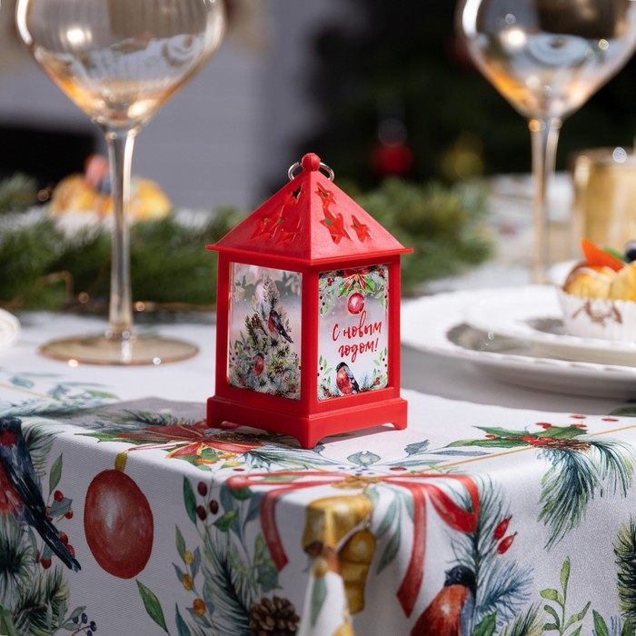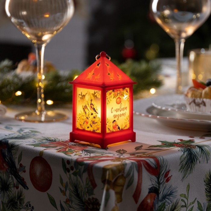 Светодиодная фигура «Красный фонарь со снегирями» 6.3 × 12 × 6.3 см, пластик, батарейки AG13х3 (в комплекте), свечение тёплое белое