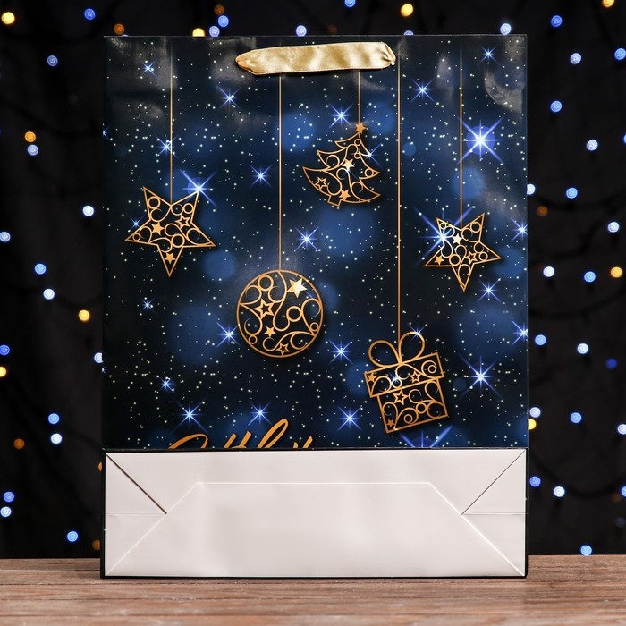 Стильный новогодний пакет с ламинацией используют как упаковку для подарка. Благодаря своему оригинальному дизайну и привлекательному внешнему виду он создаст праздничное настроение получателю и не оставит его равнодушным.