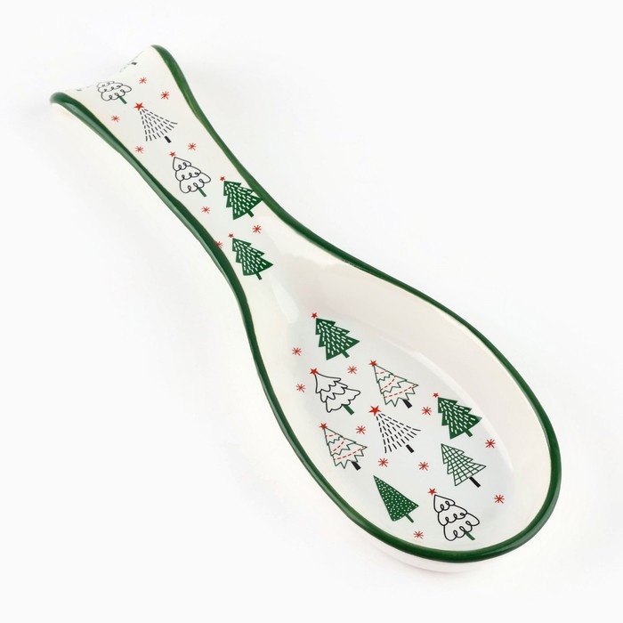 Новый год! Подставка новогодняя керамическая под ложку «Зимний лес», 7 х 22.3 см, цвет белый