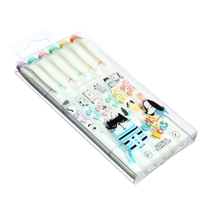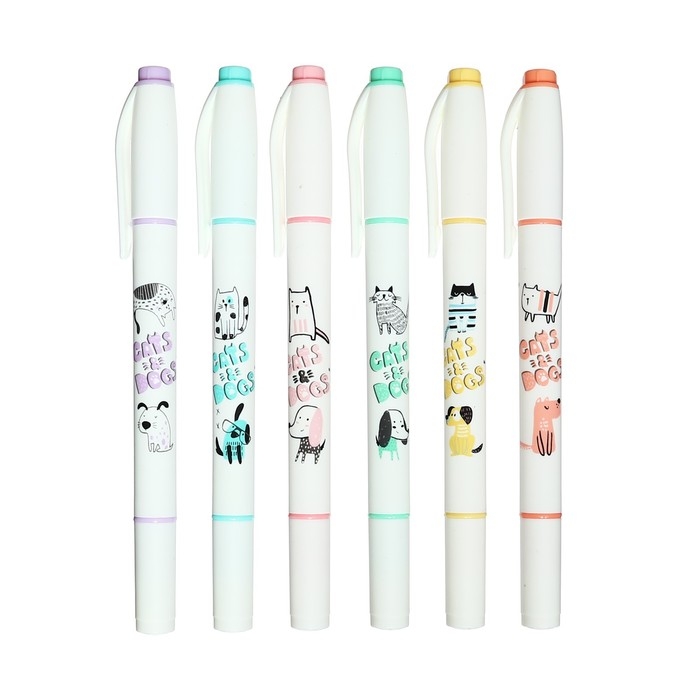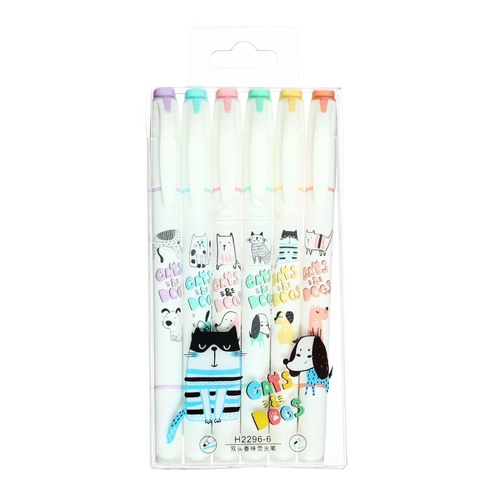Набор маркеров-текстовыделителей 6 цветов, Собака и кот