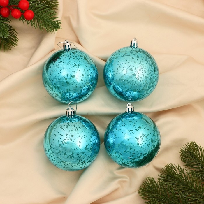 Набор шаров пластик d-8 см, 4 шт "Винтаж" голубой