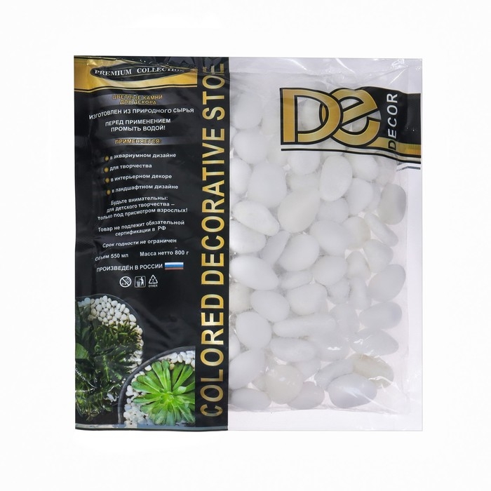 Грунт для аквариума "Галька цветная, белая" 800г фр 8-12 мм