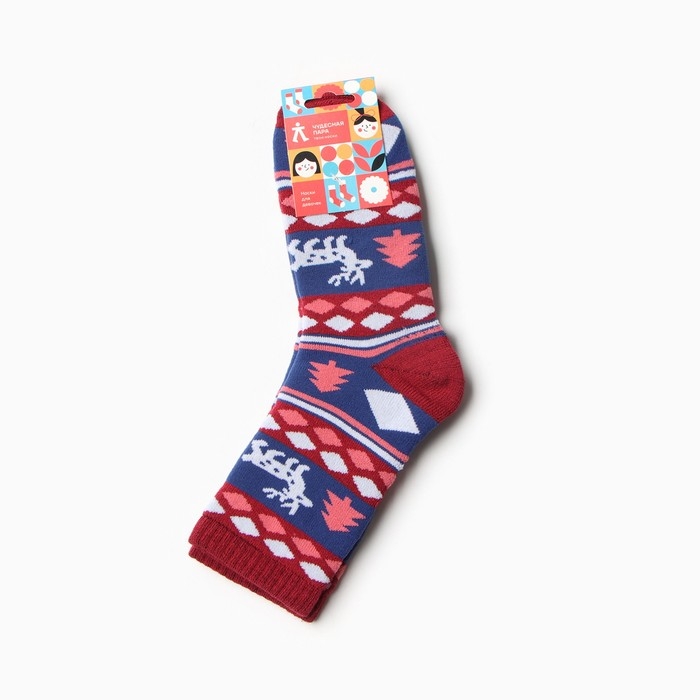 Новый год. Носки детские махровые "Скандинавские узоры" цвет красный, размер 22-24