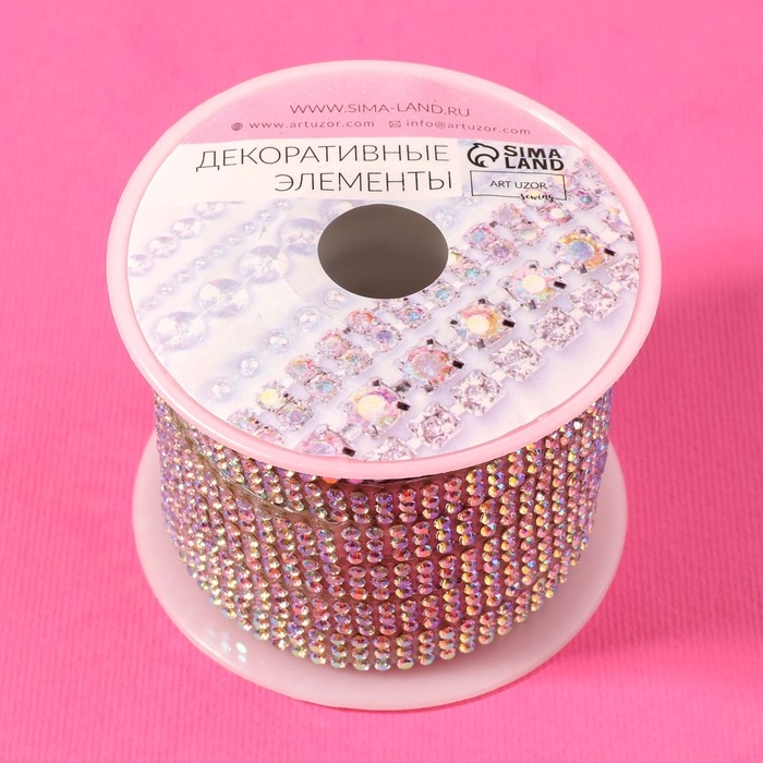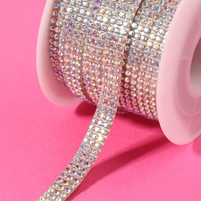 Стразы самоклеящиеся, d = 2 мм, ширина - 7 мм, 4,5 ± 0,5 м, цвет радуга