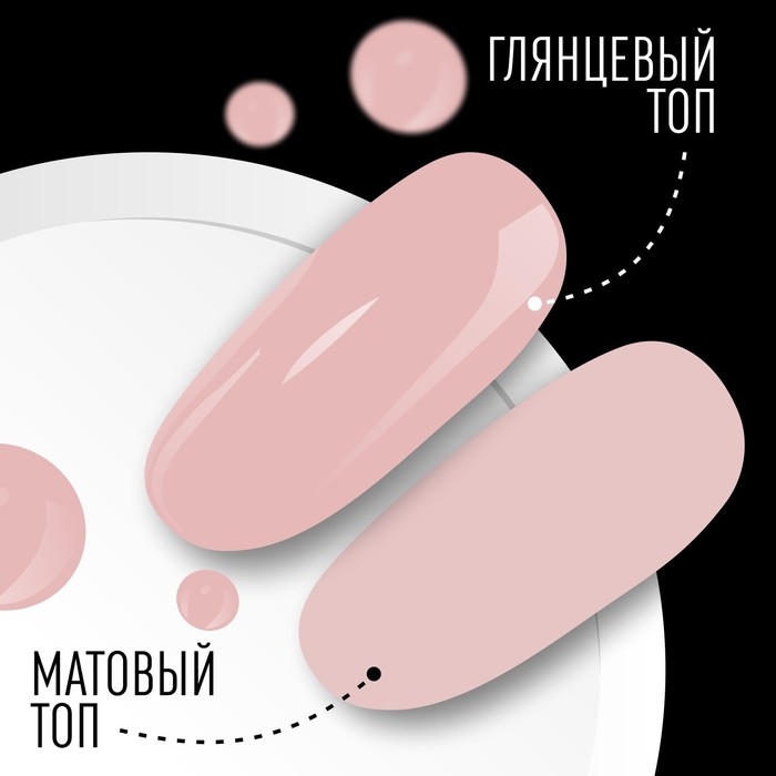 Третья фаза — наносим топовое покрытие. Топ служит для защиты маникюра от небольших механических повреждений, сколов, царапин. Также он придает блеск и способен сгладить неровности ногтя.