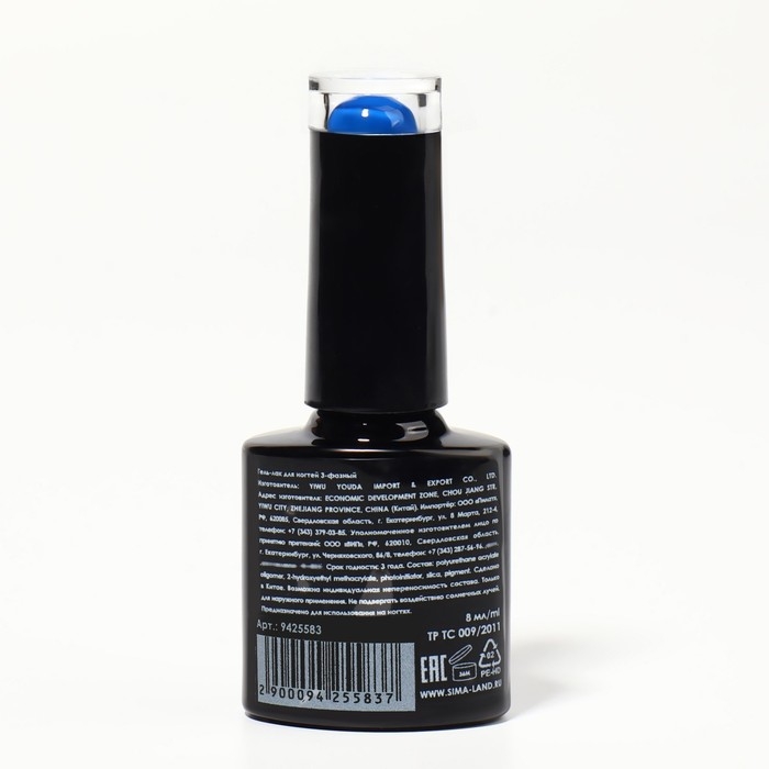 Гель лак для ногтей, с блёстками, 3-х фазный, 8 мл, LED/UV, голубой
