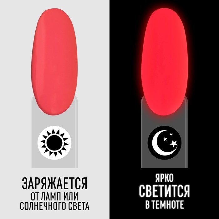 Гель лак для ногтей «GLOW IN THE DARK», 3-х фазный, 8 мл, LED/UV, люминесцентный, цвет коралловый (12)