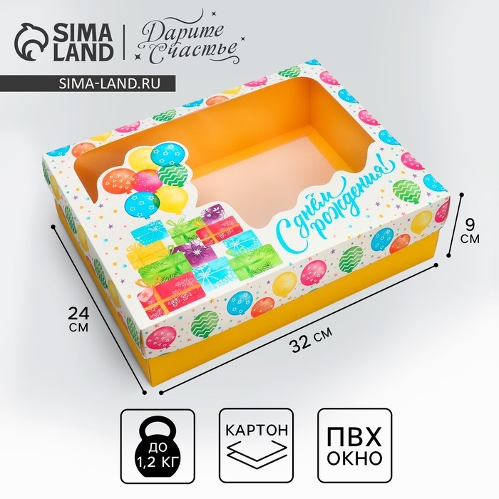 Коробка подарочная, упаковка, «С Днём Рождения», 32 х 24 х 9 см