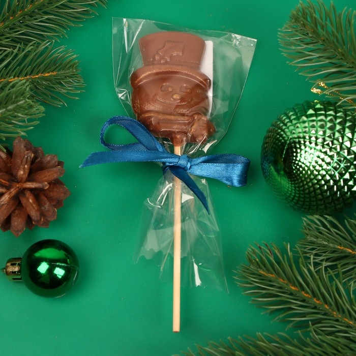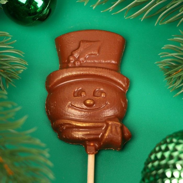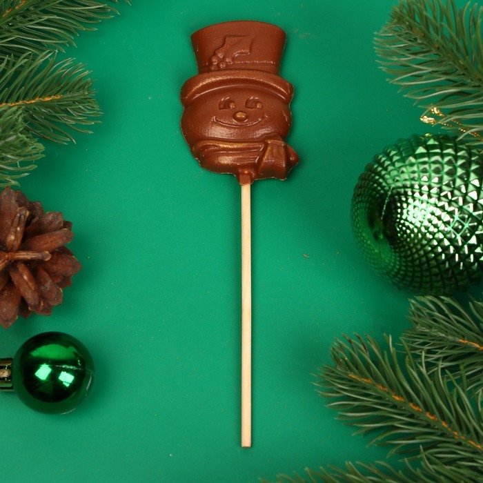Новый год. Фигура из молочного шоколада "Снеговик" на палочке , 20 г ± 5 %
