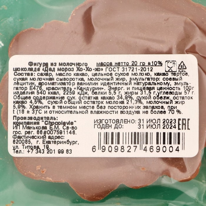 Новый год. Фигура из молочного шоколада "Дед мороз Хо-Хо-хо" , 20 г ± 5 %