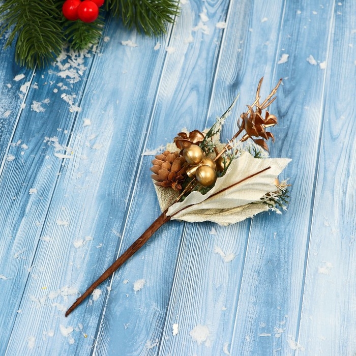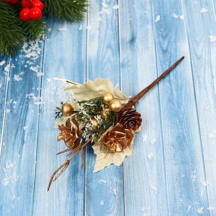Декор "Зимнее восхищение" ягоды цветы шишка, 20 см, золото