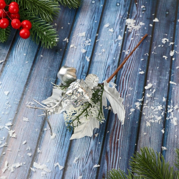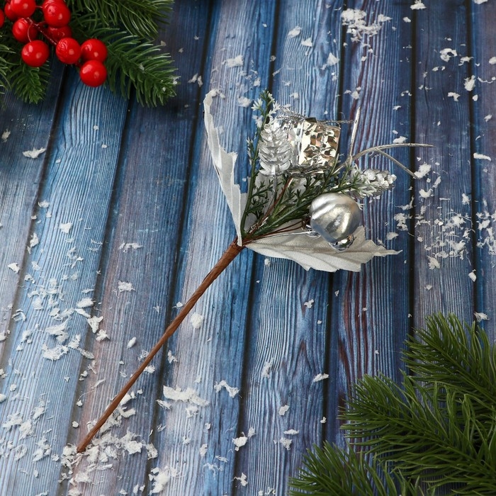 Декор "Зимнее восхищение" ягоды подарок шишки, 20 см, серебро