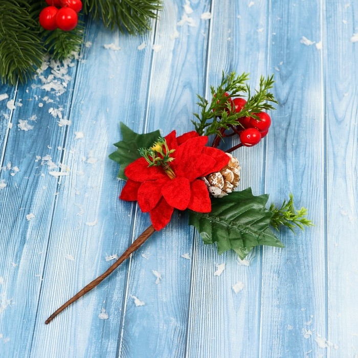 Декор "Зимние грезы" алый цветок ягоды шишка веточки, 19 см