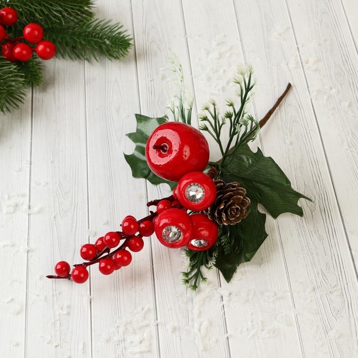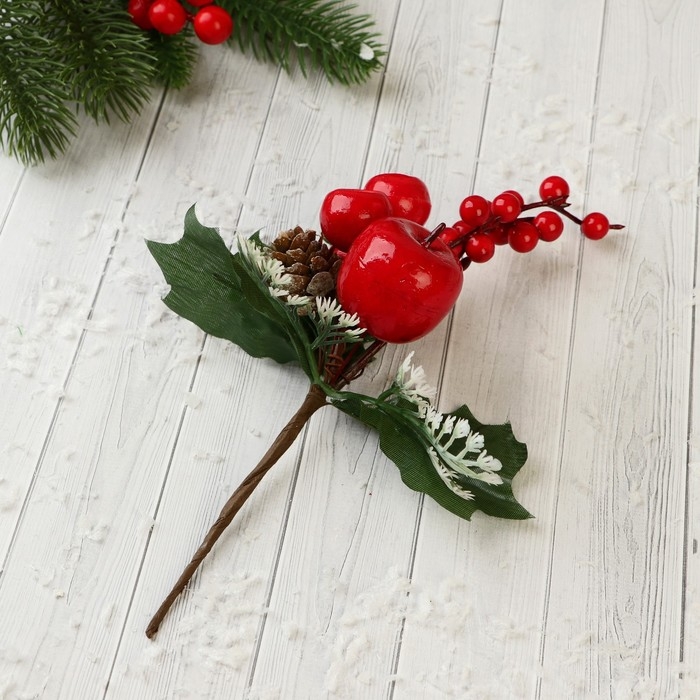 Декор "Зимние грезы" яблоко ягоды шишка зелень, 19 см