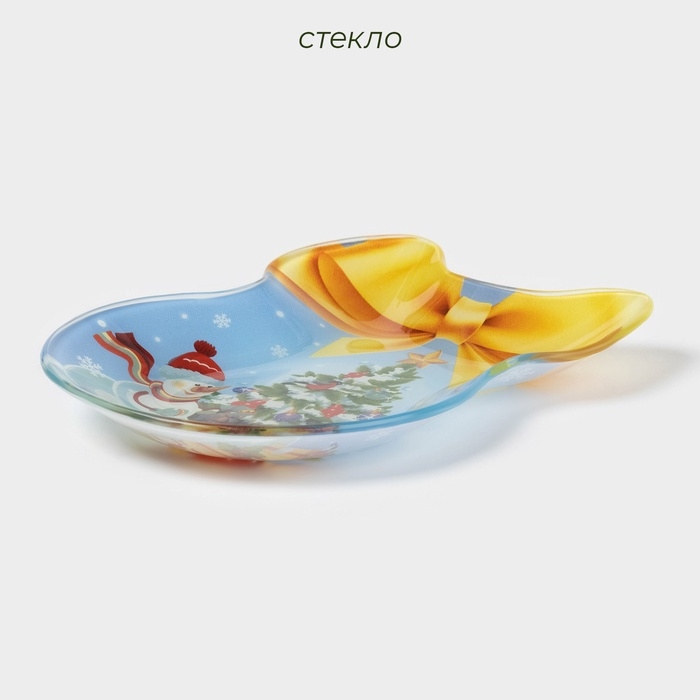 Блюдо стеклянное сервировочное Доляна «Бант. Зимняя сказка», 19×14 см