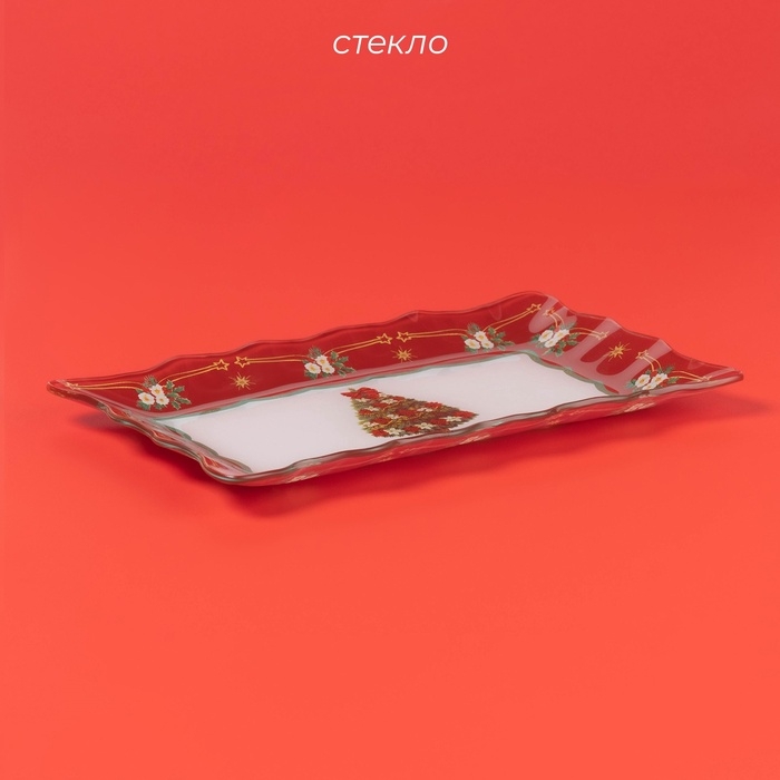 Блюдо стеклянное прямоугольное Доляна «Новогодняя ель», 25×15 см, цвет красный