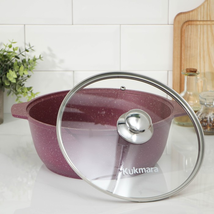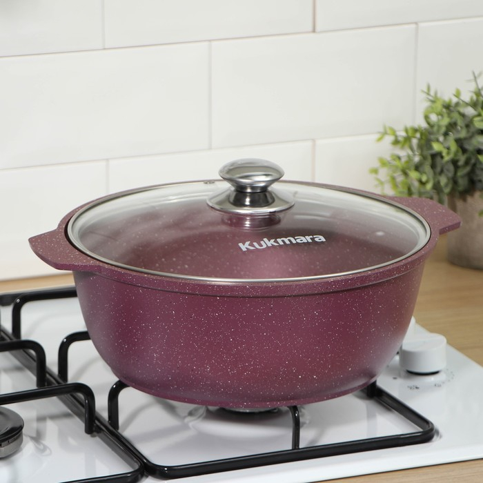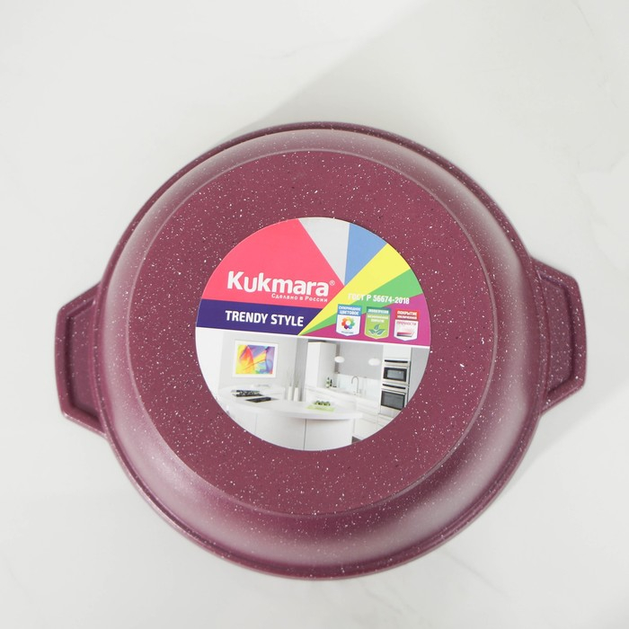 Посуда линии Trendy style разработана в соответствии с последними модными тенденциям. Кастрюля-жаровня Kukmara сделана из литого алюминия. С внутренней и внешней стороны имеет антипригарное покрытие повышенной прочности на водной основе, которое изготовлено по немецким технологиям (Weilburger Coatings GmbH).