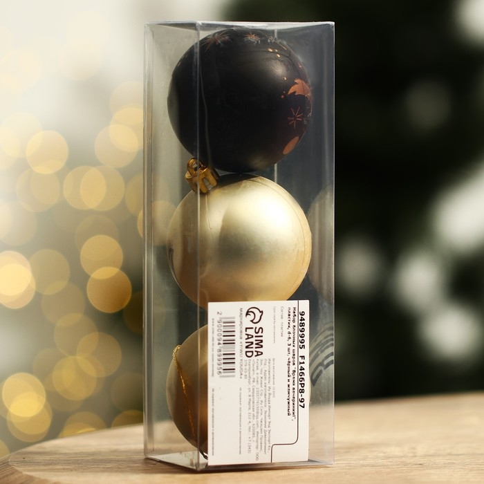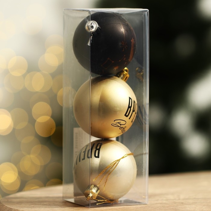 Шары ёлочные новогодние «Время вечеринки!», на Новый год, пластик, d=6, 3 шт., цвет чёрный и жемчужный