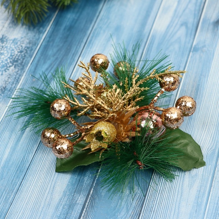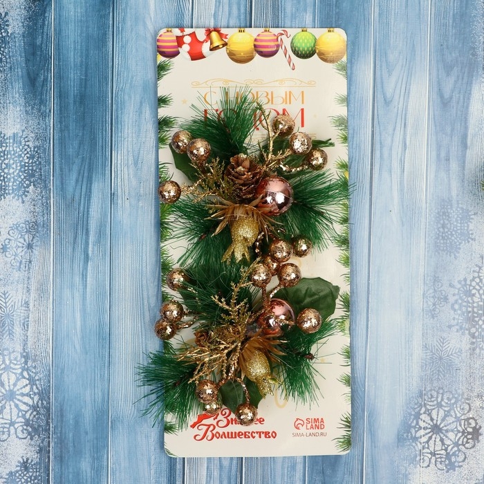 Украшение ёлочное "Еловая композиция" (набор 2 шт) золотые ягодки, 9х9 см