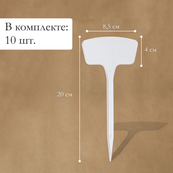 Бирки садовые для маркировки, 10 см, набор 20 шт., пластик, белые, Greengo