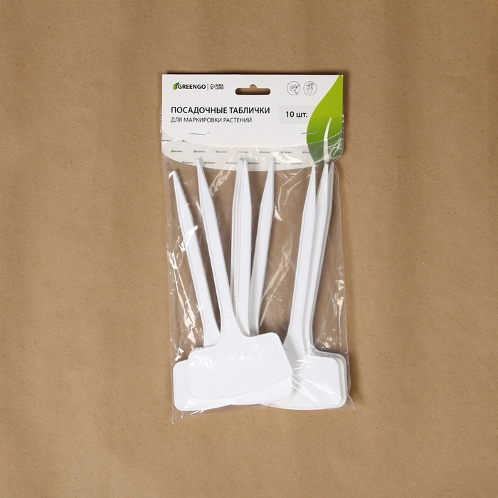 Таблички садовые для маркировки, 15 см, набор 10 шт., пластик, белые, Greengo