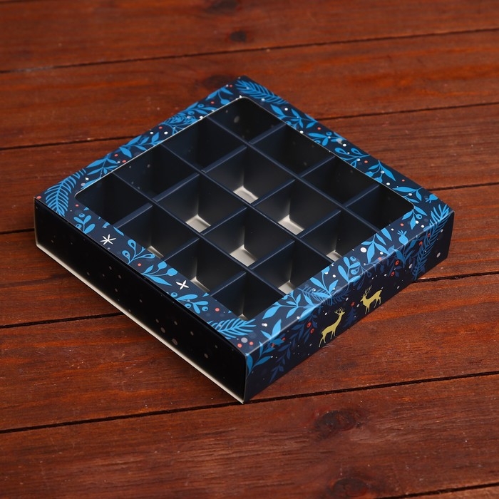 Новый год. Коробка под 16 конфет, 17,7х17,7х3,8 см, кондитерская упаковка