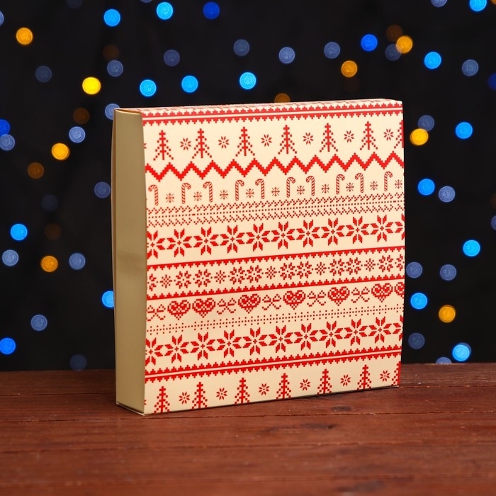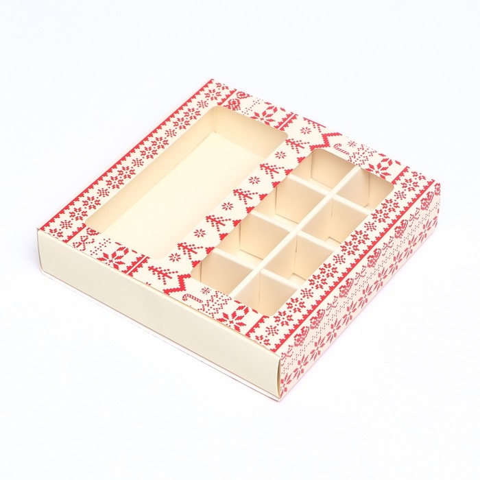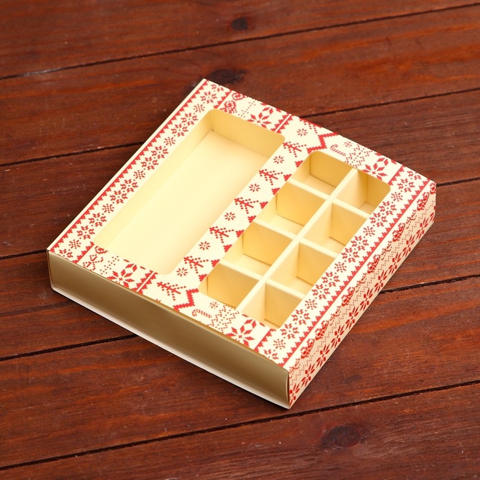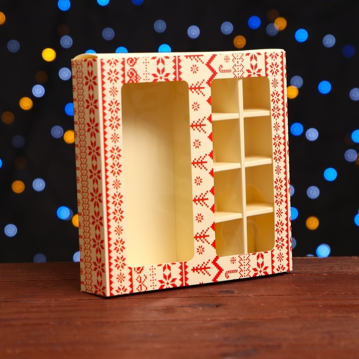 Новый год. Коробка под 8 конфет и шоколадки, 17,7х17,7х3,8 см, кондитерская упаковка