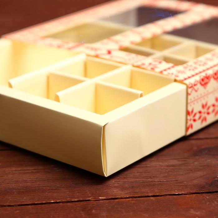 Коробка для конфет с местом для 8 конфет и шоколадки - идеальный выбор для создания небольшого сладкого подарка или угощения. Этот стильный контейнер объединяет разнообразие вкусов, предоставляя вам возможность наслаждаться как изысканными конфетами, так и ароматным шоколадом. Это идеальное угощение для себя или подарок для близких.