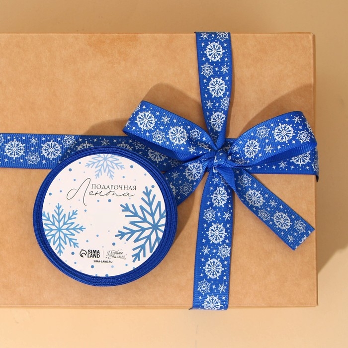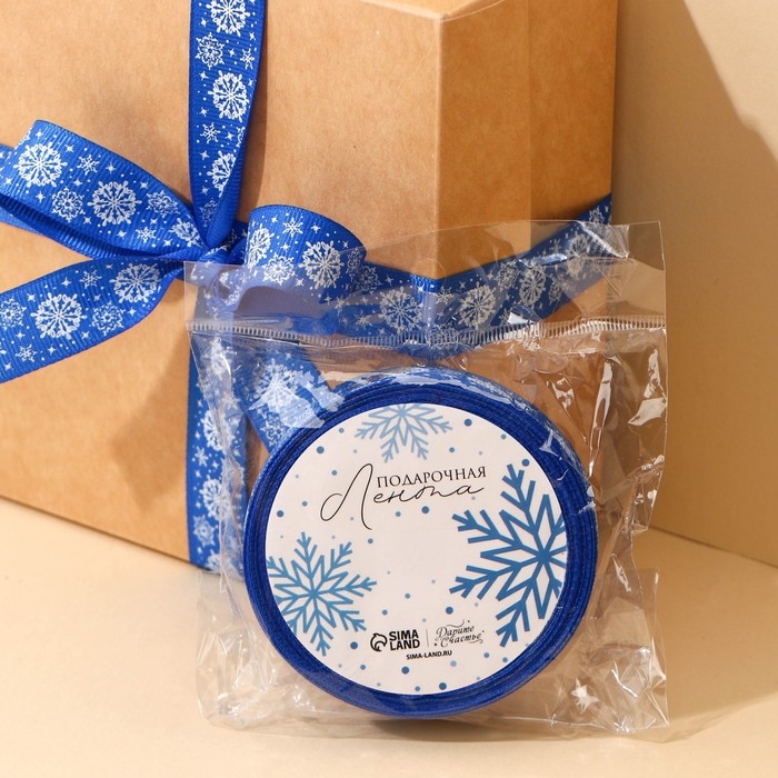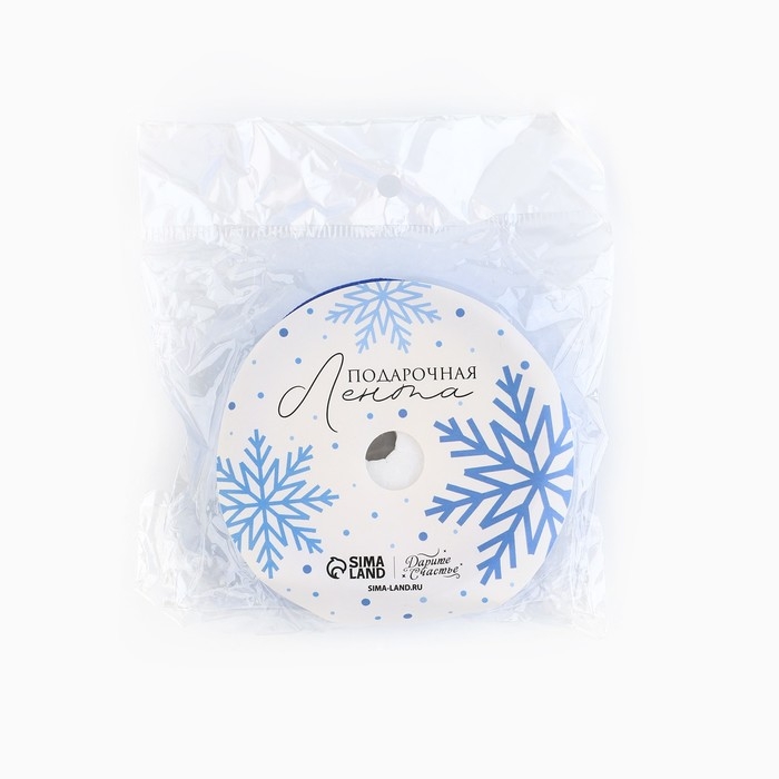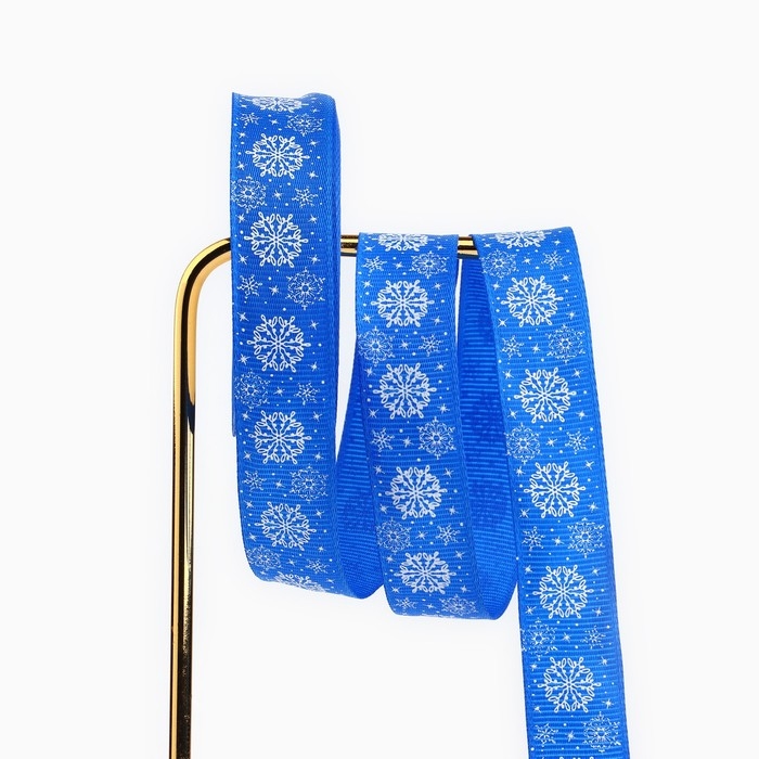 Лента декоративная репсовая «Снежинки», синяя, 2 см × 5 м