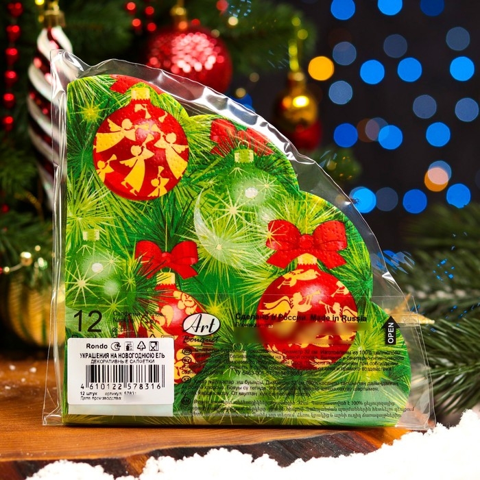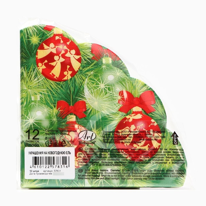 Новогодние салфетки бумажные Art Bouquet Rondo «Украшение на новогоднюю ель», 3 слоя, d 32 см., 12 шт.