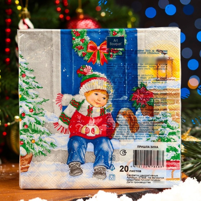 Новогодние салфетки бумажные Art Bouquet «Пришла зима», 3 слоя, 33х33, 20 шт.