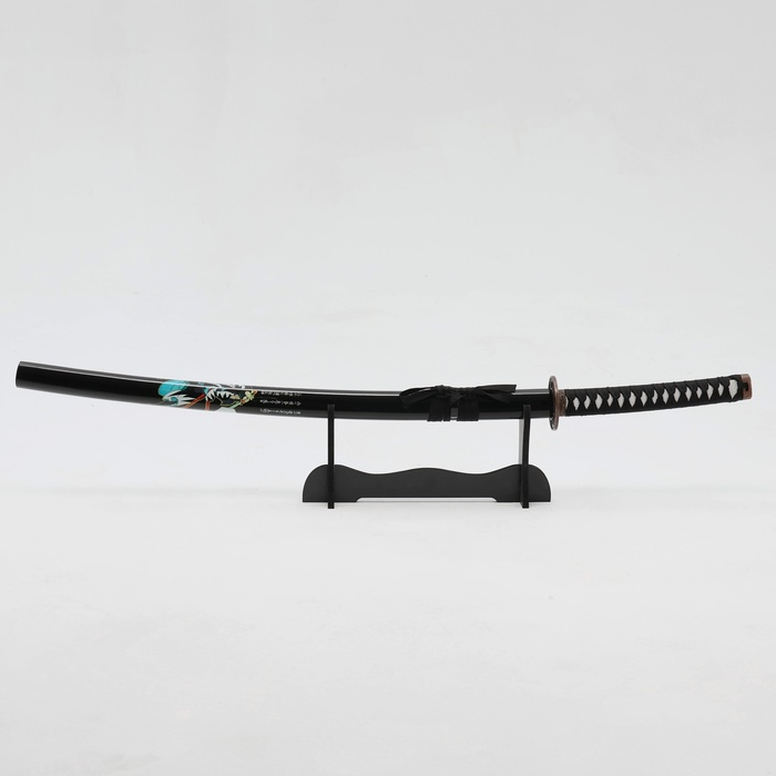 Сувенирное оружие "Катана Изаму" 100 см, клинок 68 см, чёрная, на подставке