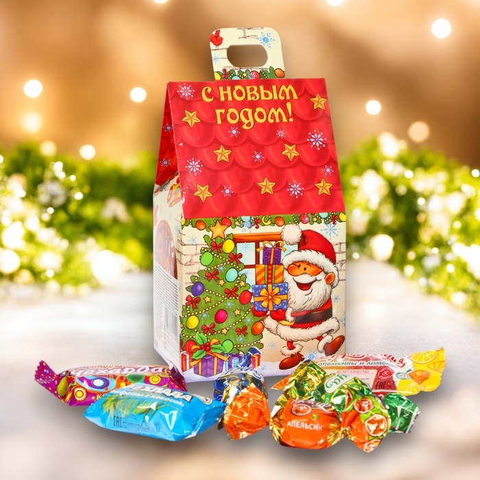 Новый год. Кондитерский набор конфет "Мини Домик САНТА", 210 г