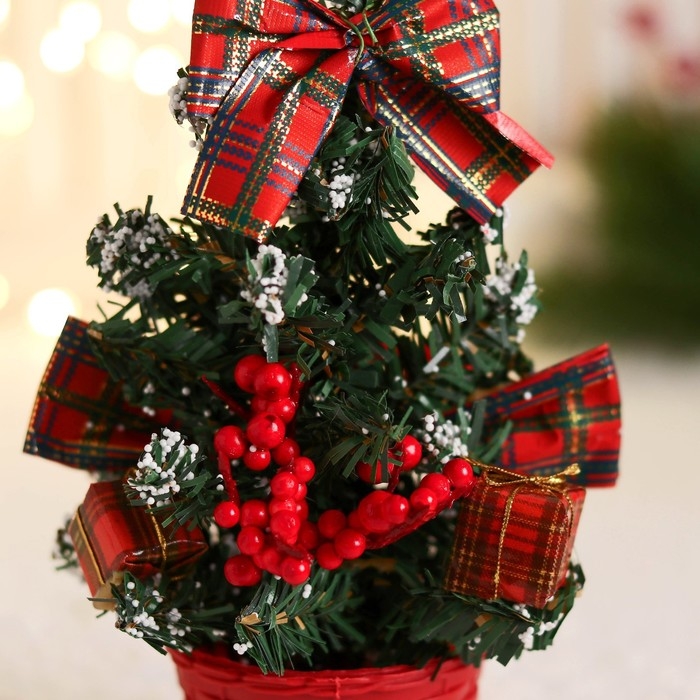 Ёлка декор "Праздничная" бантик клетка, 10х17 см, красный