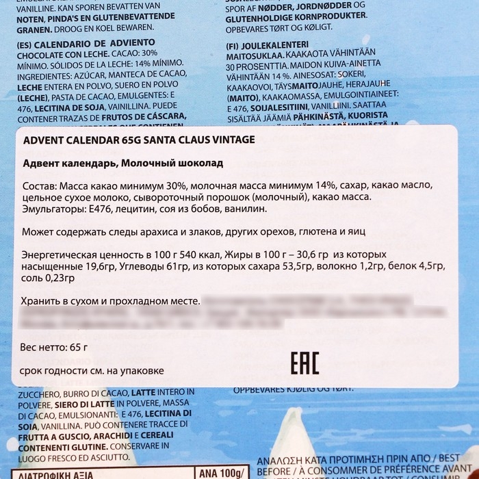 Новый год. Адвент-календарь ChokoTime "Санта Клаус", 65 г