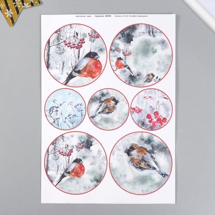 Декупажная карта "Снегири" плотность 45 г/м2, формат А4