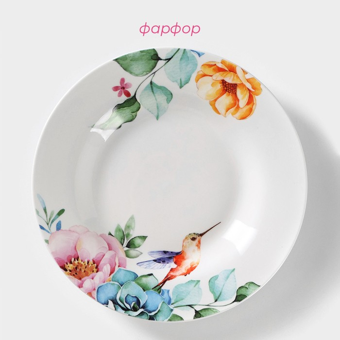 Тарелка глубокая фарфоровая Доляна «Пташка», d=20,2 см, цвет белый
