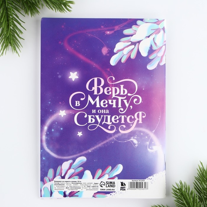Новый год. Блокнот А5, 32 листа со скретч слоем с заданием «Время чудес»